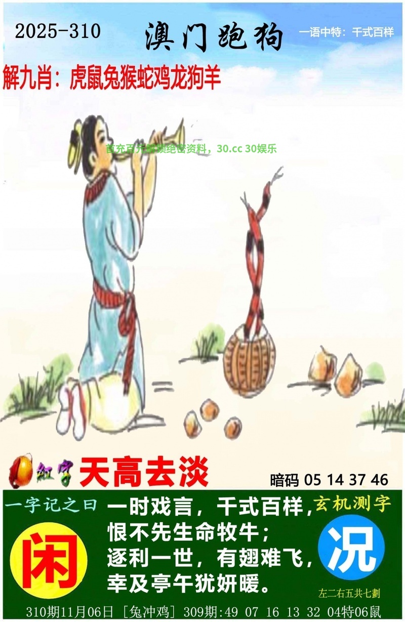 309期:淘金料【鸡33】【蛇37】【鼠30】暴富
